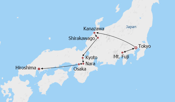 TJP04: 10 Days Private Tour of Tokyo - Hakone & Mt. Fuji - Tokyo - Kanazawa - Shirakawa-go - Kyoto - Nara - Osaka - Hiroshima