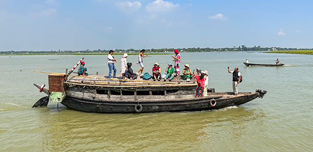After lunch, your guide will escort you to take a 6-hour train ride for Khulna. If you come during Bishwa Ijtema (the Islamic global congregation, held in Jan. or Feb.) or Eid ul-Fitr (festival of breaking the fast, held in Mar. or Apr.). You are likely to see the scene in which people insanely cram on train roof for a free ride. Although there are already policies put in place to ban the train surfing, it still exits. Of course, you are not going to mimic any of this and be pushed or shoved - we will book a ticket for you and seat you comfortably in the newest train Bangladesh has to offer. On arrival, check into the hotel.