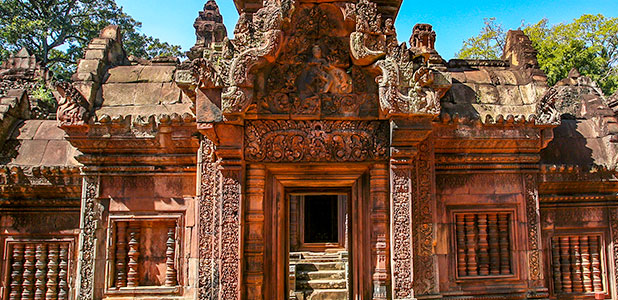 - Admire spellbinding reliefs in red-hued Banteay Srei.