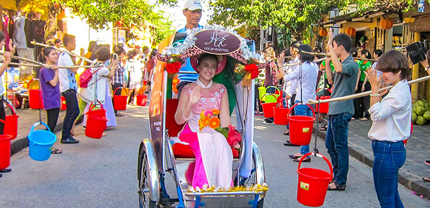 A guided day trip in Hoi An. In Ancient Town, visit Chua Ong Pagoda, Chinese Assembly Hall, Tan Ky Old house and Japanese Covered Bridge; In outskirts, visit an organic vegetable village, experience a buffalo ride and bamboo basket boat. (B+L)