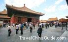 The Hall of Central Harmony, built in 1420 in the reign of Yongle in the Ming Dynasty, is located behind the Hall of Supreme Harmony The name of the Hall has a close relationship with Confucian principles, and means keeping harmony between people and environment It is the smallest of the three halls in the outer court, covering 580 square meters.