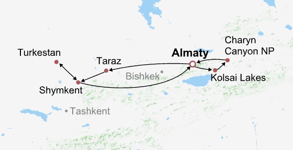 With countless Islamic architectures hinting at a culture of great splendor, crumbling ruins reputed to remind visitors of the ancient Silk Road, and distinct customs with exotic charm, Kazakhstan has long captured travelers’ imagination as the essence of Central Asian travel by blending many characteristic mosques and impressive landscapes. So if you plan to spend 7-10 days there, you can choose from our itineraries focused on Kazakhstan, which include visiting Almaty and its surrounding national parks, traveling between the capital Astana and Almaty, or exploring Almaty and three other ancient cities: Taraz, Shymkent, and Turkestan.