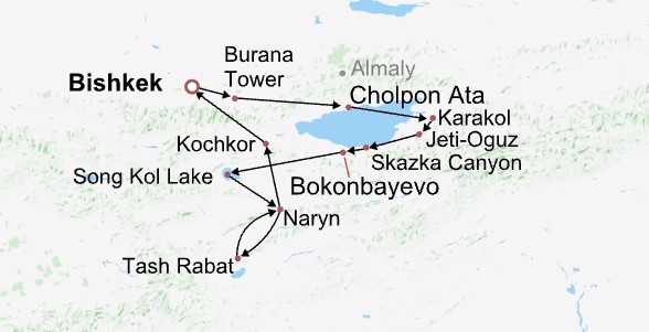 The first stop of a Kyrgyzstan trip should be around the Issyk-Kul Lake. If you have a one-week holiday, explore its southern shore first to watch Bokonbayevo Village’s golden eagle hunting demonstration, hike through the otherworldly Skazka Canyon, and experience multiethnic Karakol. On the northern shore, the Cholpon Ata resort provides soothing hot springs and a chance to admire Turkic carvings. If you have 10 days or more, extend your trip to Song Kol Lake and Tash Rabat Caravanserai, which showcase the essence of nomadic life and the spirit of the ancient Silk Road.