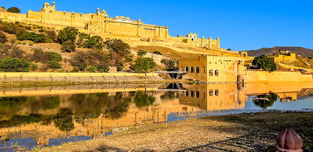 On the way back to downtown Jaipur, we will arrange a complimentary photo spot, the Jal Mahal, for you to take pictures of the secluded palace on a lake. Next, the guide will take you through several of the city's historic monuments, including the Maharaja City Palace, which houses the royal collection of valuables, the Jantar Mantar, known for the world’s largest sundial and bizarre brick architecture, the Hawa Mahal (from outside), with its extraordinary pink walls and numerous windows, as well as the Birla Temple, a large Hindu mandir dedicated to Lord Vishnu and his consort Lakshmi.