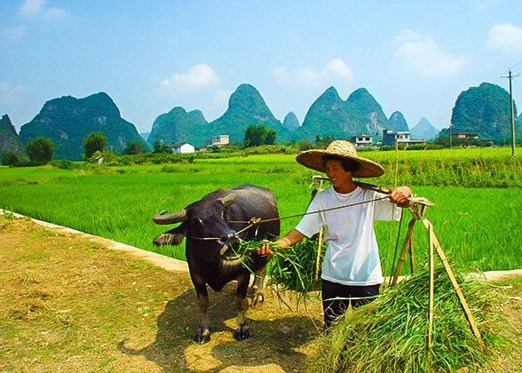 Then we take you to explore the rustic side of Yangshuo. Through villages nestling in green hills, you get to see traditional houses very different from Beijing’s courtyard residences. Your trip here will be perfected with a visit to a local peasant's home. Perhaps you will learn how to fetch water from a well, or try on a traditional bamboo hat and a straw rain cape, just to have fun! After that, we will drive you back to the hotel in Guilin.