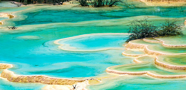 In the morning, we will set out on a trip to the dream-like Huanglong Scenic Area featuring layered and colorful calcium ponds. The main attraction, Multi-Colored Ponds, resembles a cluster of blue emerald. Autumn leaves turn red and golden, showering the ponds in bright colors. Huanglong has stunning shoals, lakes, waterfalls, brooks, snow-clad mountains and virgin forests.