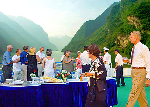 In the morning, the river guide will give an introduction to the cruise schedule and the Yangtze River. At about 12:30, the ship will dock at Fengdu County for an onshore excursion in the Ghost City scenic spot, a sprawling building complex where you get to known how spirits of the dead are tested before they can enter afterlife in Chinese folklores. Your afternoon will be cheered onboard by some interesting activities carefully prepared by the cruise company.