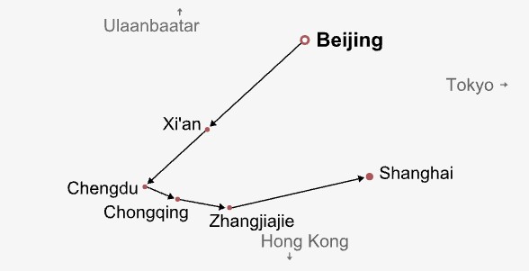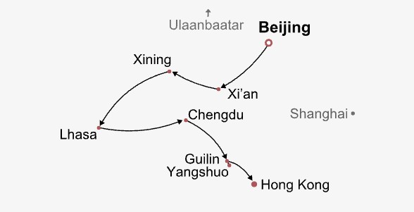 Step 1: Plan your route: Mark and connect your interested cities on the map and check the feasibility according to the country’s high-speed rail network.