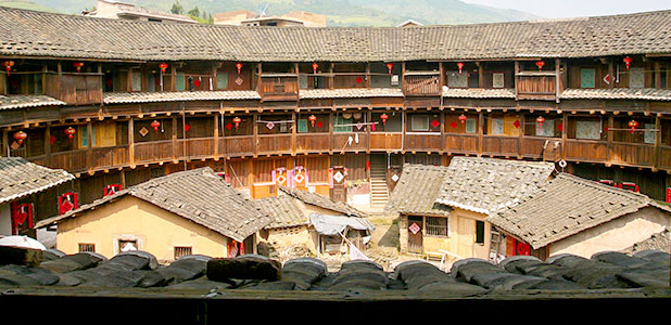 Upon arrival, you will be led to the Zhencheng Building, known as the "Eight Diagrams Building". It is famous for its magnificent outside and delicate inside design. The Zhencheng Building is the top choice for a Fujian Tulou day tour. Constructed in 1912 from the structure of eight diagrams, it enjoys fame as the "Prince of Tulou". Among the numerous earthen buildings, it is the most brilliant one, with a large area of about 5,000 square meters (5,980 square yards). The Zhencheng Building consists of two circular houses - an outer four-floor building and an inner two-floor building, looking beautiful and elegant.